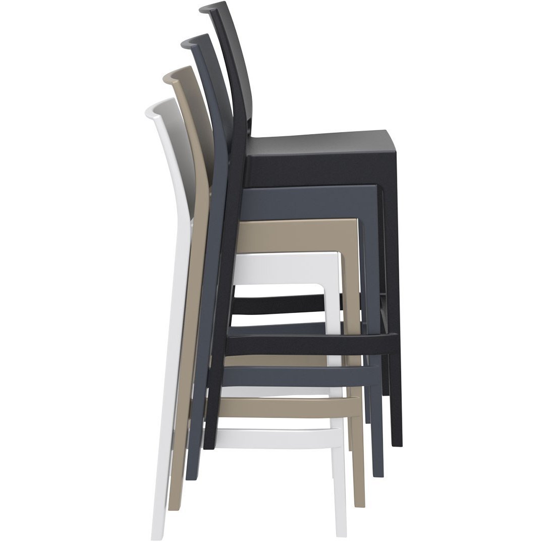 Stolička MAYA BAR je vyrobená z kvalitného polypropylénu vystuženého sklenenými vláknami, ktorý zaručuje pevnosť a dlhú životnosť. Moderná technológia výroby mu dodáva čistý dizajn v neutrálnych farebných tónoch. Stolička je vhodná na použitie v interiéri aj exteriéri.