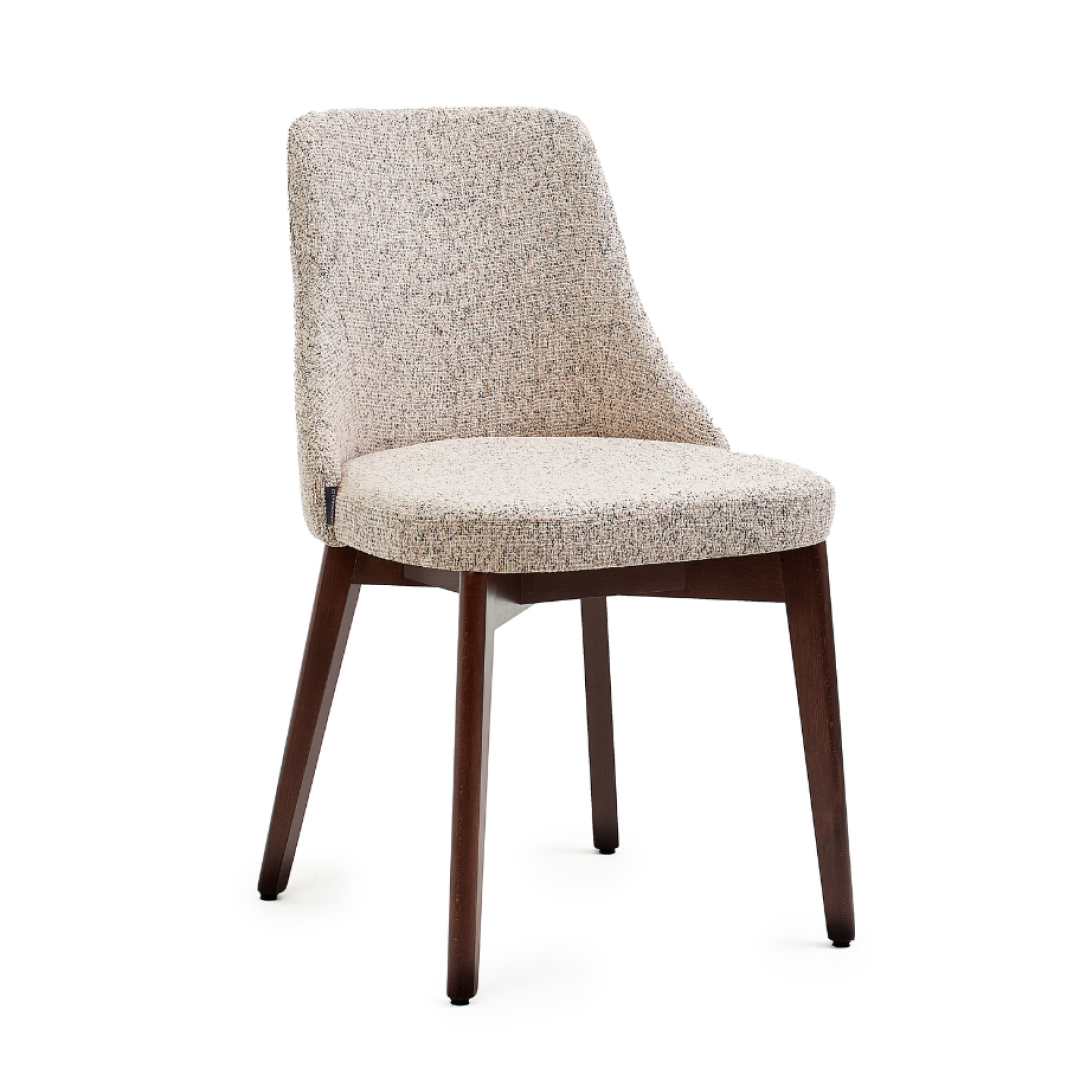 Drevená stolička s čalúneným sedákom a chrbtovou opierkou. Nádherný moderný štýl, ktorý je vhodný do reštaurácie, či kaviarne. V každej prevádzke bude pôsobiť veľmi príjemne. Stolička je buková, čalúnená časť stoličky je potiahnutá odolnou tkaninou.