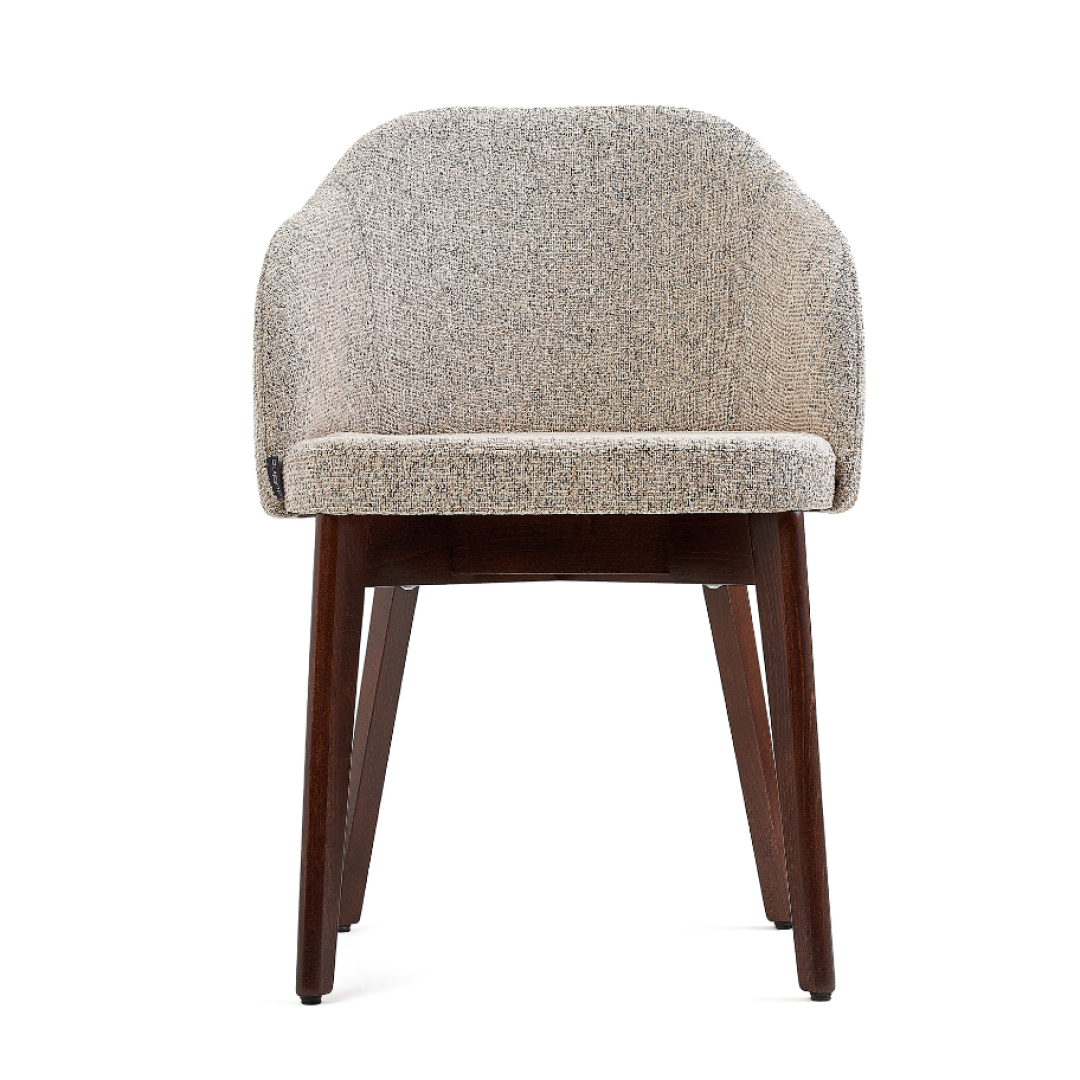 Drevená stolička s čalúneným sedákom a chrbtovou opierkou. Nádherný moderný štýl, ktorý je vhodný do reštaurácie, či kaviarne. V každej prevádzke bude pôsobiť veľmi príjemne. Stolička je buková, čalúnená časť stoličky je potiahnutá odolnou tkaninou.