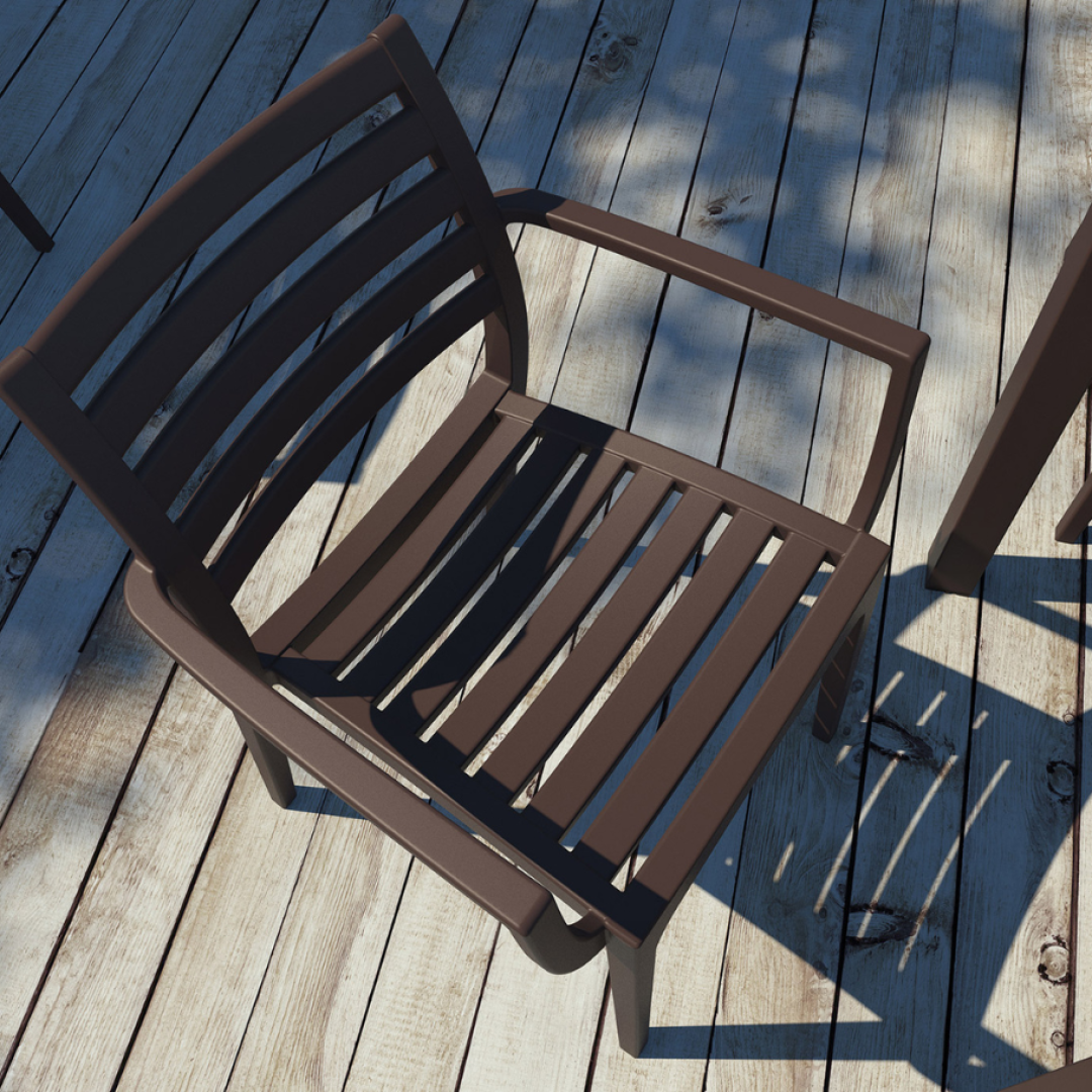 Stohovateľná stolička ARTEMIS je vyrobená z kvalitného polypropylénu vystuženého sklenenými vláknami, ktorý zaručuje pevnosť a dlhú životnosť. Moderná technológia výroby mu dodáva čistý dizajn v neutrálnych farebných tónoch. Stolička je vhodná na použitie v interiéri aj exteriéri.